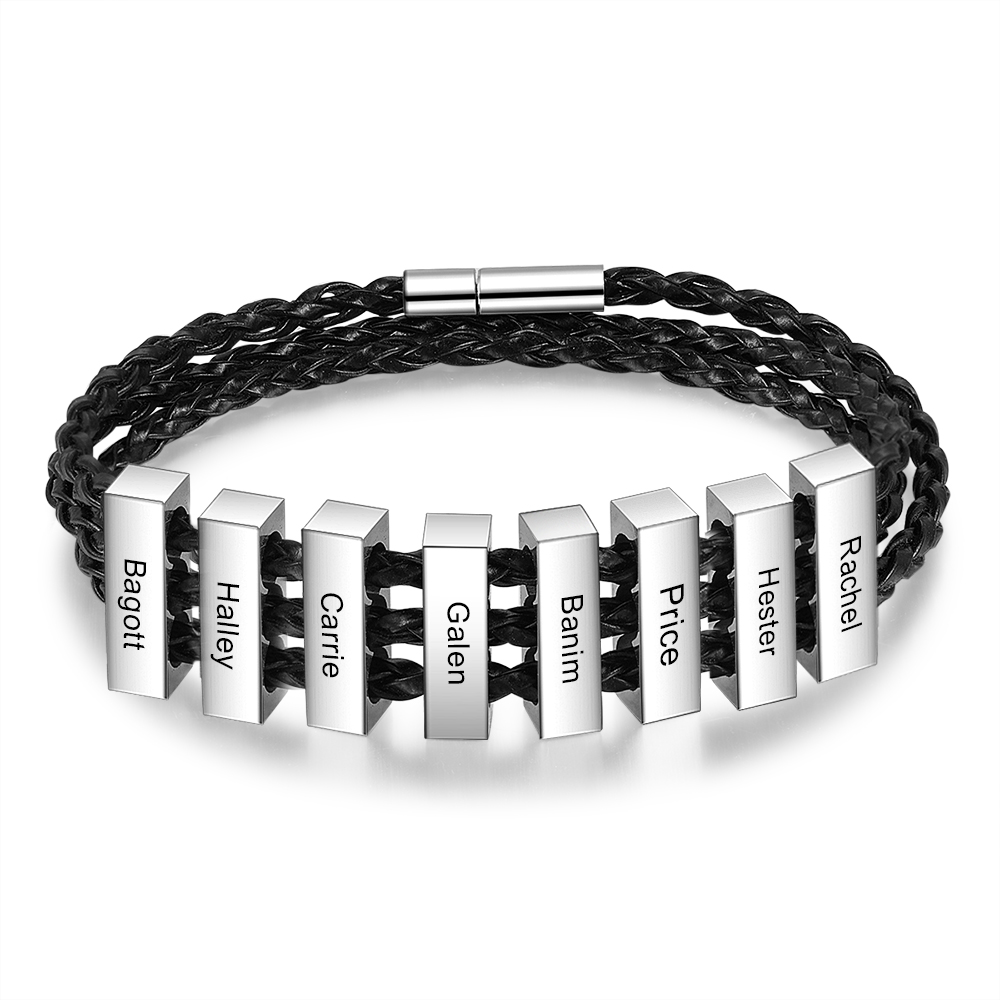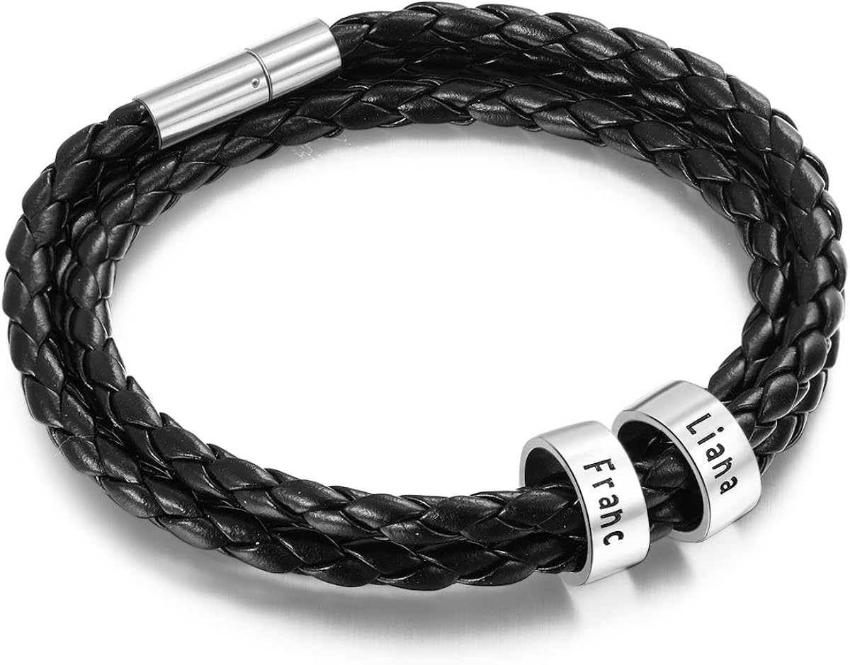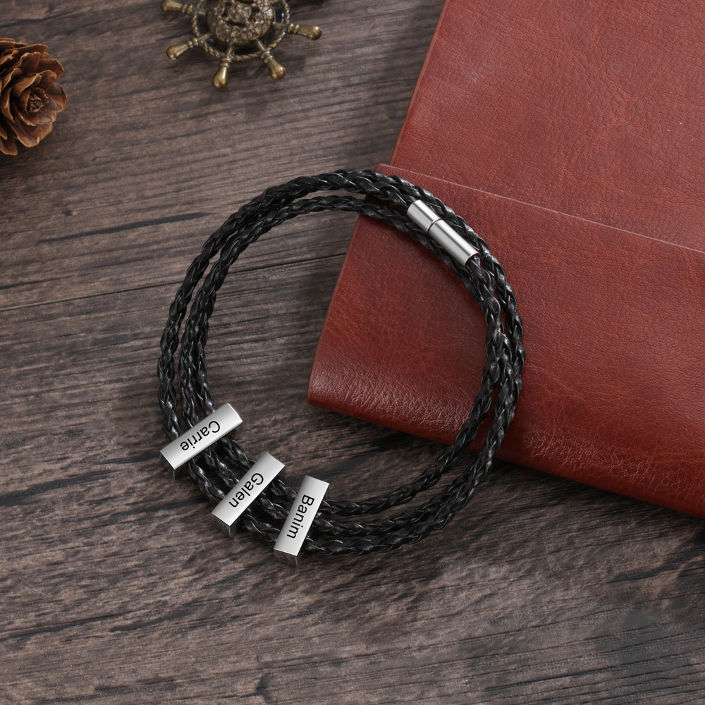 Men's Black Braided Bracelet With Engraved Black Metal Discs Engraved With Names PicturePerfectPP 5 out of 5 stars (107) Sale Price $23.21 $ 23.21 $ 30.95 Original Price $30.95 …More colors. Clasp braided leather bracelet. Handmade rustic cowhide wristband for men, women and children. 4-strip flat braid. Leather craftsmanship. Nhymera. 5 out of 5 stars. (346) $14.18 …
